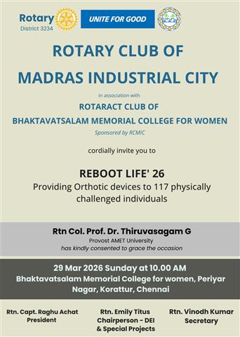 Rotary Club of Madras industrial city is organising Meal a Month pr. . .